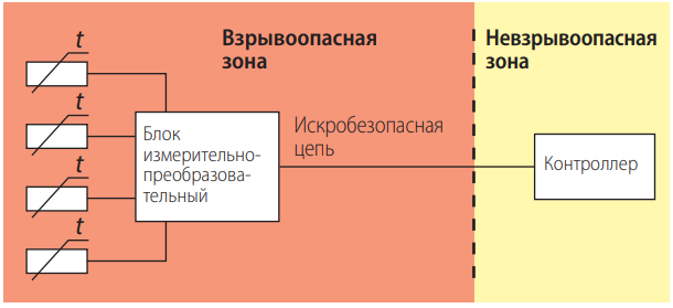 - Исполнение Б – блок измерительно-преобразовательных в корпусе 160×160×120 мм. Позволяет устанавливать один-два измерительно-преобразовательных модуля ИПМ (подключение до двух независимых каналов измерения). До восьми независимых каналов измерения Длина линии между регулятором (контроллером) и блоком – до 1000 м Установка во взрывоопасной зоне Минимальная температура эксплуатации: –55 °С Степень защиты – IP66 Назначение Основным назначением блоков измерительно-преобразовательных является преобразование сигналов: термометров сопротивления (ТС), преобразователей термоэлектрических (ТП), преобразователей с унифицированными выходными сигналами в унифицированный сигнал (4÷20) мА и/или в цифровой сигнал на базе HART-протокола, а также ввод в управляющий компьютер или контроллер измеренных значений температуры и тока, поступающих от разнообразных датчиков. Блок измерительно-преобразовательный РТВ/ИПМ