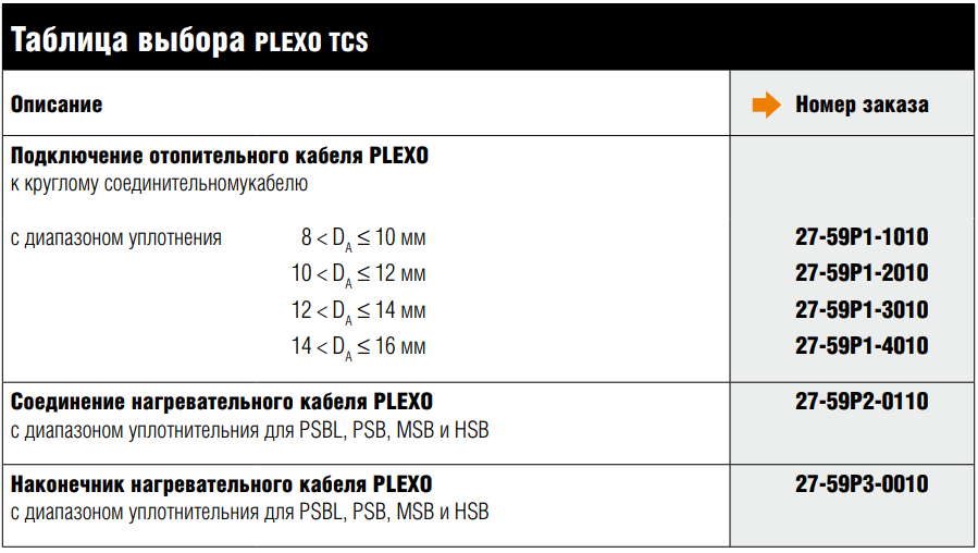 Встроенная клеммная техника позволяет надежно фиксировать провода саморегулирующихся греющих кабелей и соединительные провода при помощи пружинных зажимов. Тщательно продуманная система уплотнений гарантирует надежную защиту электрооборудования от самых экстремальных погодных условий. Система PLEXO TCS позволяет осуществлять непосредственное соединение греющего кабеля и соединительных проводов для подключения к удаленному распределителю или корпусу подключения. Два одинаковых греющих кабеля могут быть сведены вместе посредством собственной соединительной детали PLEXO TCS. PLEXO TCS - простой способ удлинения имеющихся нагревательных контуров.
