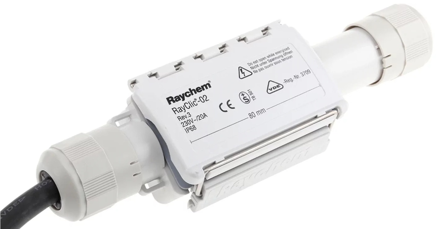 Узлы Raychem RayClic-CE-02 предназначены для подключения питания и разветвления греющего кабельного провода. Соединительные элементы Raychem RayClic обеспечивают подключение саморегулирующихся кабелей Raychem.