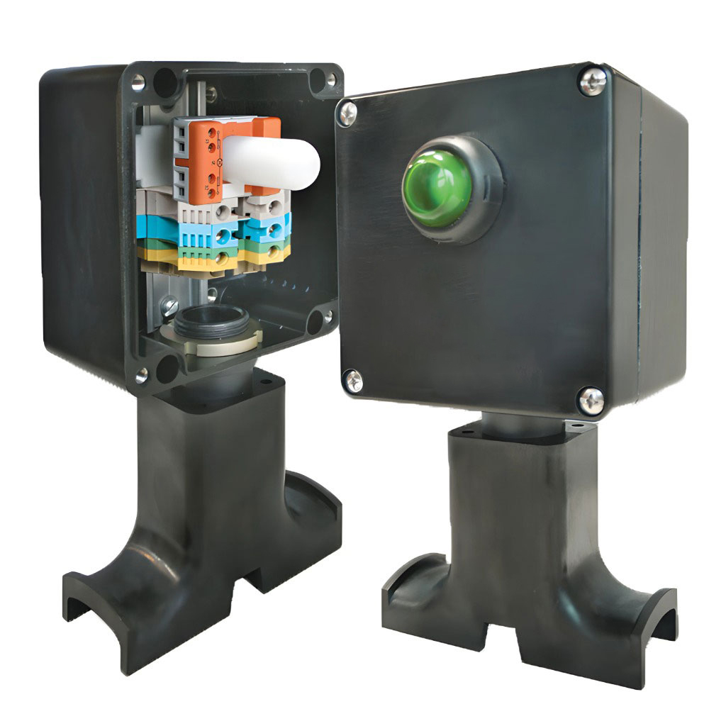 Конструкция корпуса обеспечивает защиту от проникновения влаги и пыли IP66 и высокую коррозионную стойкость. Кабельный ввод коробки предназначен для подключения небронированных силовых кабелей диаметром от 7 до 18 мм или бронированных силовых кабелей диаметром от 12 до 20 мм. Применяемые клеммные наборы позволяют обеспечить подключение многожильных или одножильных проводов сечением от 1,5 до 10 мм². Для заказов доступны исполнения коробок с винтовыми или пружинными клеммными зажимами.
