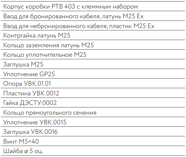 Комплект поставки соединительных коробок РТВ(i) 403-1Б/0: