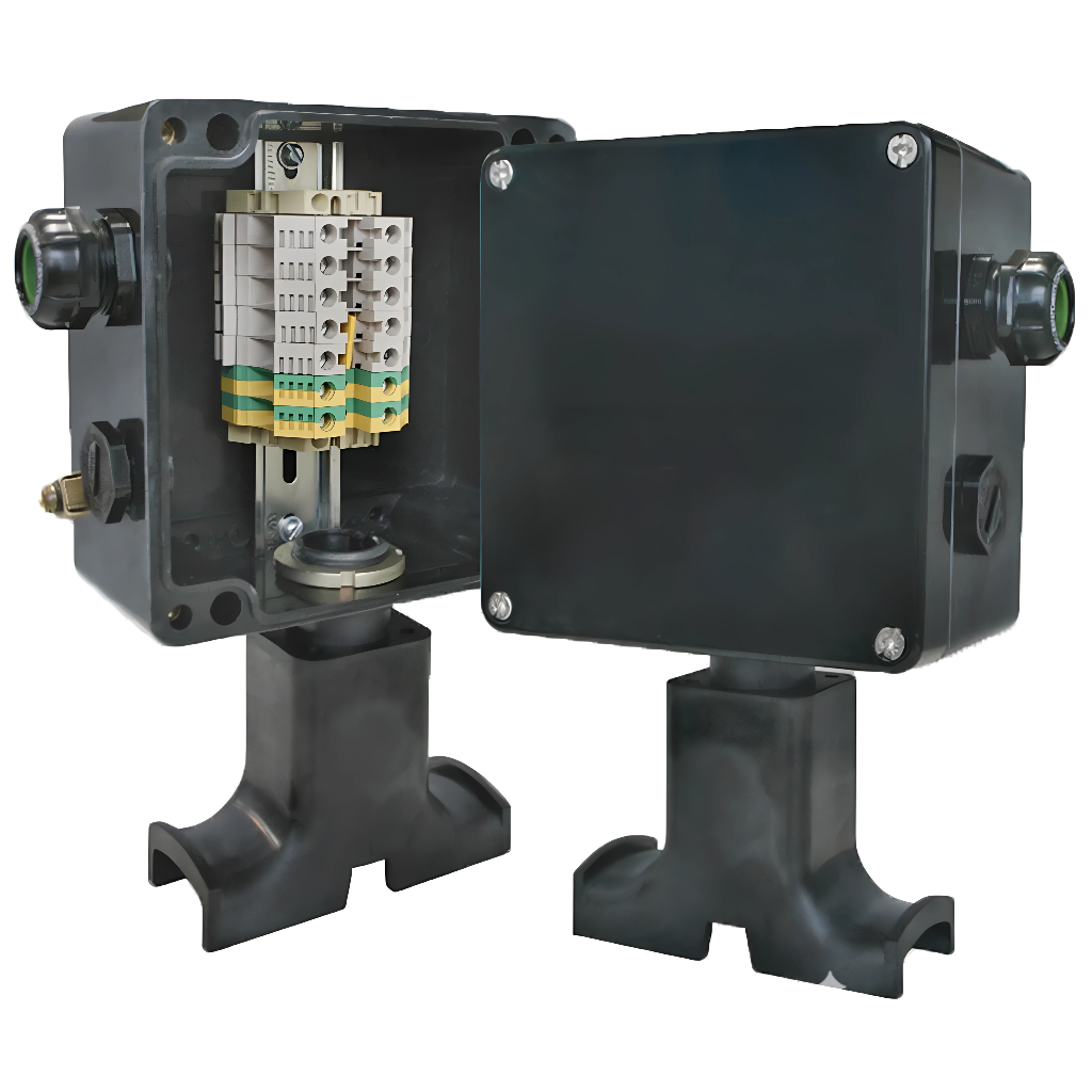 Конструкция корпуса обеспечивает защиту от проникновения влаги и пыли степени IP66 и высокую коррозионную стойкость. Кабельные вводы коробки предназначены для подключения небронированных силовых кабелей диаметром от 7 до 18 мм или бронированных силовых кабелей диаметром от 12 до 20 мм. Применяемые клеммные наборы позволяют обеспечить подключение многожильных или одножильных проводов сечением от 1,5 до 10 мм².