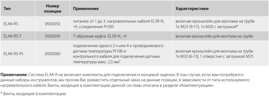 Область применения ELAK-RS-T
