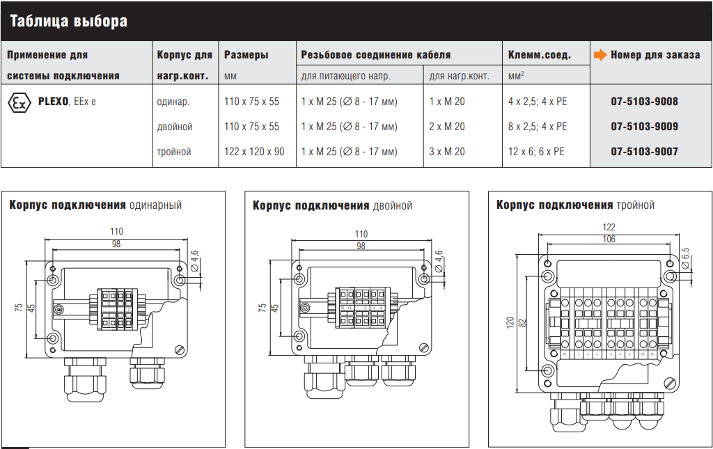 С помощью подсоединительных коробок Bartec (07-5103-9007) из полиэфира можно соединить один или более нагревательных контуров с напряжением питания. подсоединительные коробки располагают соответствующей комплектацией клемм и необходимыми кабельными вводами или резьбовыми отверстиями. подсоединительные коробки алюминиевом исполнении можно получить на заказ.