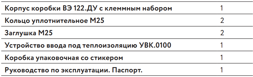 Комплект поставки соединительной коробки ВЭ 122.ДУ: