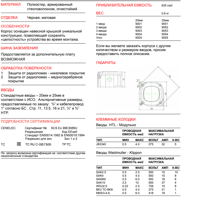 JB9000/EX/6 (2x2) коробка соединительная взрывозащищенная соответствует всем заявленным характеристикам и поставляется с официальной гарантией.