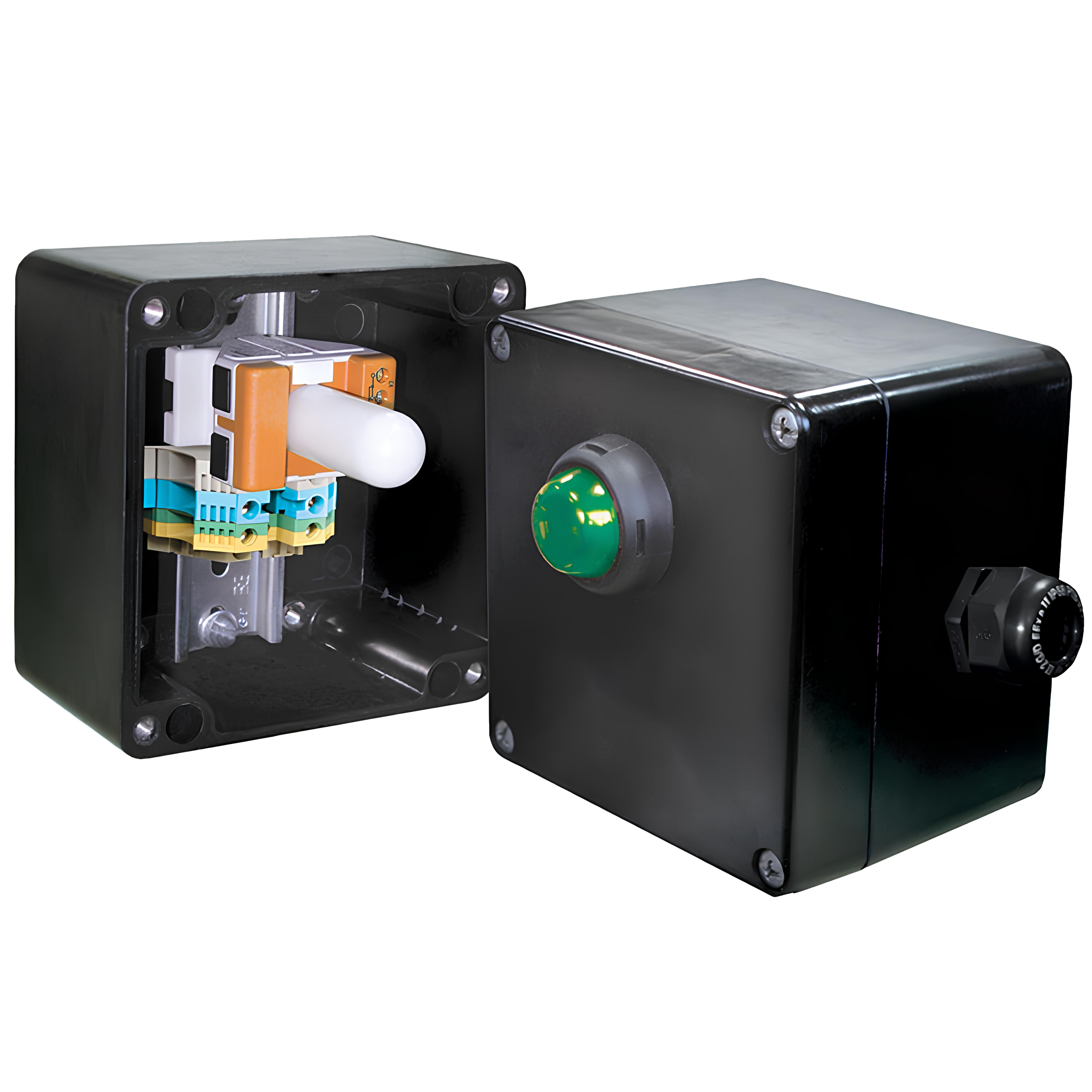 Конструкция корпуса обеспечивает защиту от проникновения влаги и пыли степени IP66 и высокую коррозионную стойкость. Кабельные вводы коробки предназначены для подключения небронированных силовых кабелей диаметром от 7 до 18 мм или бронированных силовых кабелей диаметром от 12 до 20 мм. Применяемые клеммные наборы позволяют обеспечить подключение многожильных или одножильных проводов сечением от 1,5 до 10 мм². Для заказов доступны исполнения коробок с винтовыми или пружинными клеммными зажимами.