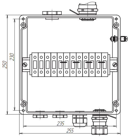 - до четырех вводов для подключения небронированных кабелей диаметром от 7 до 18 мм или бронированных кабелей диаметром от 12 до 20 мм.