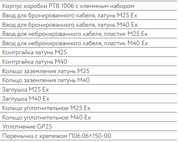 Комплект поставки соединительных коробок РТВ 1006-1Б/5Б (16мм2):