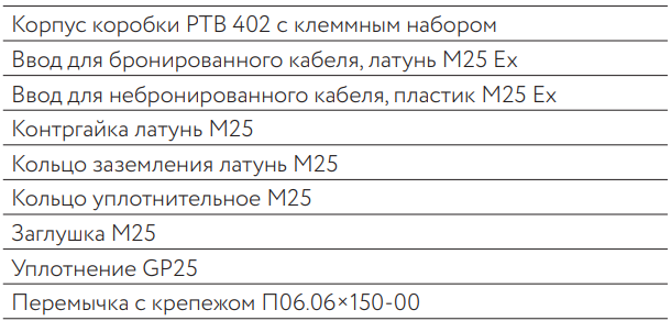 Комплект поставки соединительных коробок РТВ 402(П)-0/0: