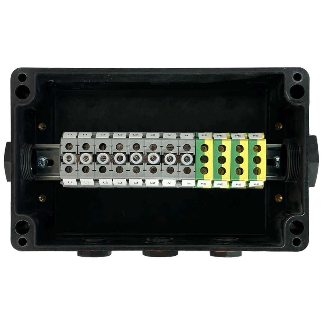 Коробка КСТ-КС-П-L(35)/6;N(35)/2;PE(35)/4-В-В:ЗВ(25)/3-С:ЗВ(32)/1-D:ЗВ(40)/1 представляет собой герметичную оболочку с установленными в ней взрывозащищенными кабельными вводами и заглушками, а также клеммами для подключения жил кабелей. В зависимости от типа присоединяемых кабелей могут применяться различные кабельные вводы.