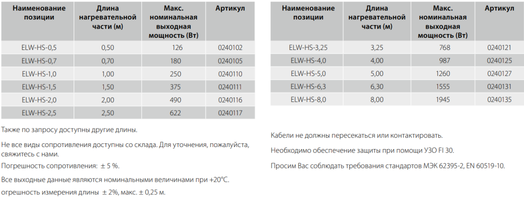 Eltherm ELW-HS-2,0 резистивный греющий кабель соответствует всем заявленным характеристикам и поставляется с официальной гарантией.