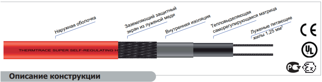 Саморегулирующиеся нагревательные кабели состоят из двух параллельных токопроводящих жил, заключенных в полупроводниковую саморегулирующуюся матрицу. Это означает что нагревательный кабель автоматически реагирует на изменения окружающих условий. С увеличением температуры синтетический материал матрицы расширяется, молекулярные силы и связи между углеродистыми частицами ослабевают, уменьшая проводимость. И наоборот, при уменьшении температуры проводимость увеличивается, так как увеличиваются связи между углеродистыми частицами.
