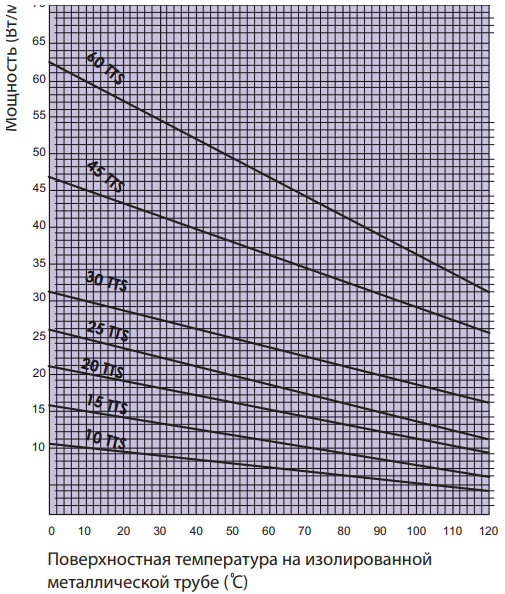 График зависимости удельной мощности кабеля от температуры 20 TTSM-2-ВО