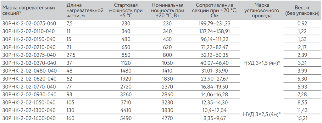 Секция нагревательная кабельная 30РНК202 на напряжение 220 В и линейную мощность 30 Вт/м 30РНК-2-02-0370-040