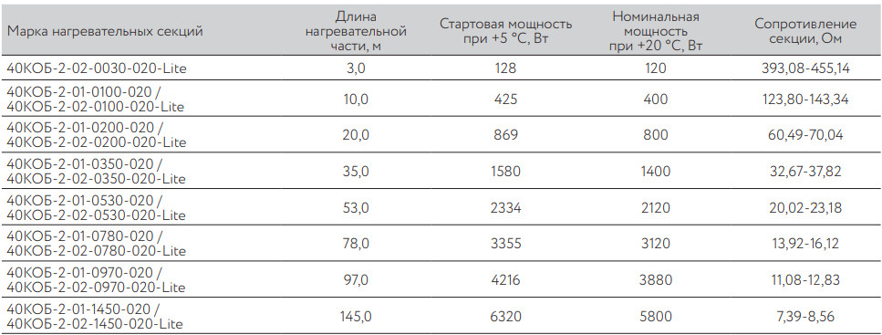 40КОБ-2-02-0970-020-Lite резистивная нагревательная секция для обогрева бетона соответствует всем заявленным характеристикам и поставляется с официальной гарантией.