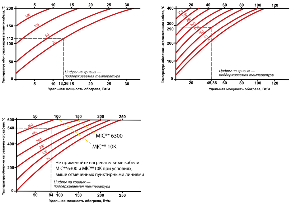 Максимальные рабочие температуры: на основе кабеля с минеральной изоляцией МIС Cu
