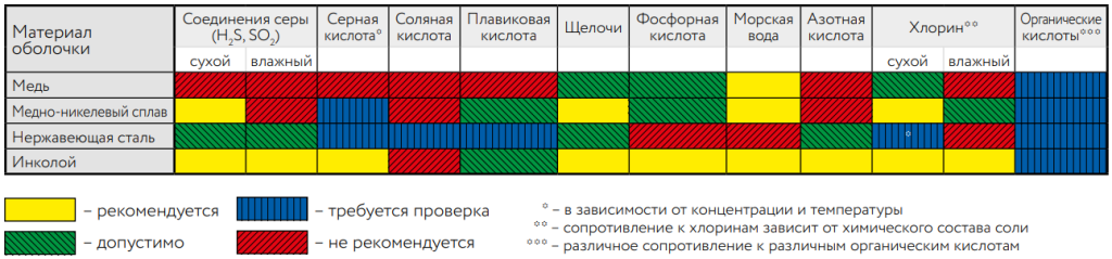 1. Медь - Максимальная термостойкость до 250 °С2. Медноникелевый сплав - Максимальная термостойкость до 400 °С