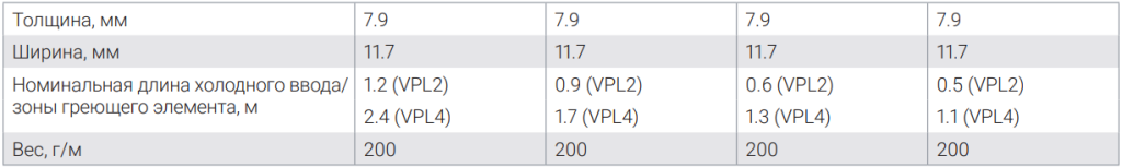 Номинальная мощность обогрева при напряжении 230 В и 480 В на теплоизолированных стальных трубах (мощность обогрева кабелей VPL4 при 400 В будет ниже) Для выбора греющего кабеля, наиболее полно соответствующего Вашим нуждам, используйте разработанную nVent программу TraceCalc.