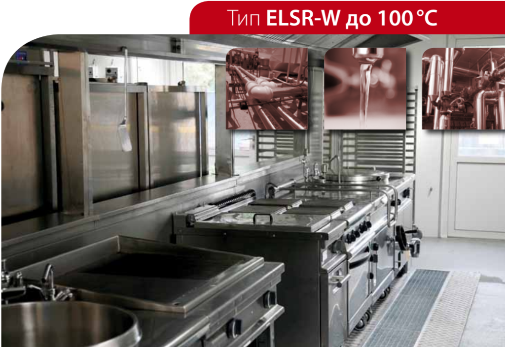 Саморегулирующийся нагревательный кабель ELSR-W-55-2-AO (горячая вода) используется на резервуарах, трубах, клапанах и т.д. где рабочая температура колеблется в пределах приблизительно от 30 °С до 80 °С (во включенном состоянии) и 100 °С (в выключенном состоянии ). Саморегулирующиеся нагревательные кабели ELSR-W часто используются для обогрева масло- и жиропроводов, например, в пищевой промышленности. Подходит для водопроводов с горячей водой и служит для защиты от промерзания, поддержания температуры и предотвращения образования бактерий легионеллы.