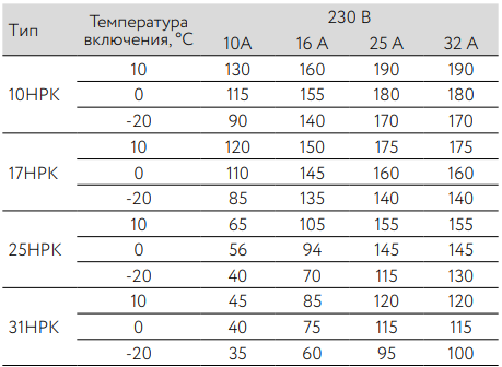(или суммарная длина секций одной марки, подключаемых параллельно) в зависимости от типа автоматического выключателя питания: