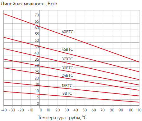 - Автоматически регулирует тепловыделение в ответ на изменение температуры трубы
