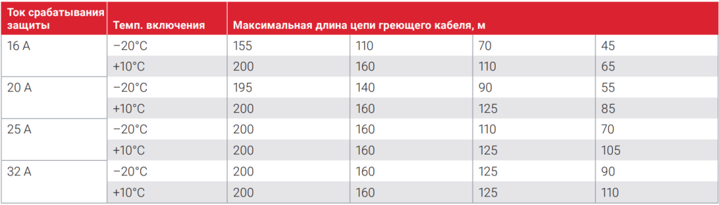 МАКСИМАЛЬНАЯ ДЛИНА ЦЕПИ ОБОГРЕВА ПРИ ИСПОЛЬЗОВАНИИ АВТОМАТА ТИПА С В СООТВЕТСТВИИ С EN 6089 Raychem 8BTV2-CT