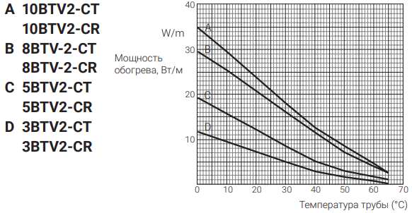 Мощность обогрева Raychem 8BTV2-CT