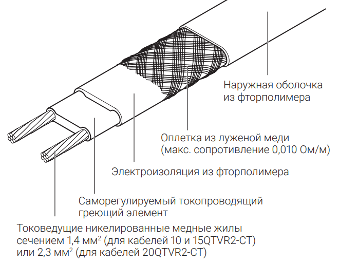 Raychem 20QTVR2-CT саморегулирующийся греющий кабель соответствует всем заявленным характеристикам и поставляется с официальной гарантией.