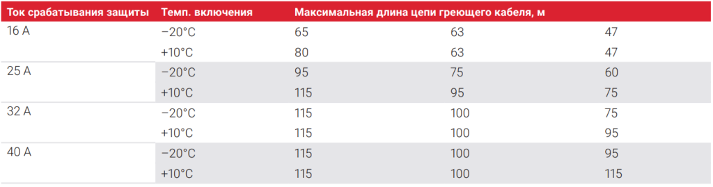 МАКСИМАЛЬНАЯ ДЛИНА ЦЕПИ ОБОГРЕВА ПРИ ИСПОЛЬЗОВАНИИ АВТОМАТА ТИПА «С» В СООТВЕТСТВИИ С EN 60898 Raychem 20QTVR2-CT