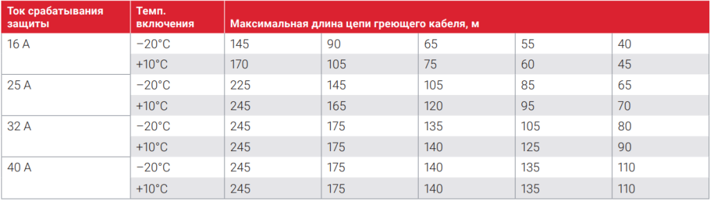 МАКСИМАЛЬНАЯ ДЛИНА ЦЕПИ ОБОГРЕВА ПРИ ИСПОЛЬЗОВАНИИ АВТОМАТА ТИПА «С» В СООТВЕТСТВИИ С EN 60898 Raychem 8XTV2-CT