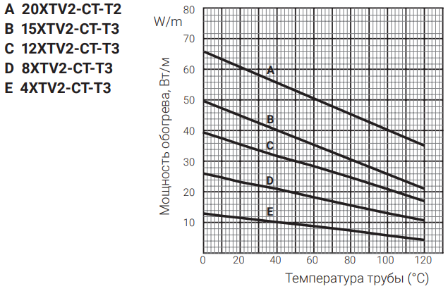 Мощность обогрева Raychem 8XTV2-CT