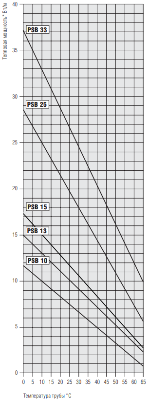 Элемент сопротивления с температурной зависимостью, находящийся между параллельно проложенными медными проводами PSB 07-5801-2155, регулирует и ограничивает теплоотдачу греющего кабеля в зависимости от температуры окружающей среды. Если повышается температура окружающей среды, снижается греющая мощность кабеля. Этот саморегулируемый температурный режим позволяет предотвратить перегрев кабеля даже при его пересечении. Термоограничитель не требуется (в том числе и во взрывоопасных условиях).