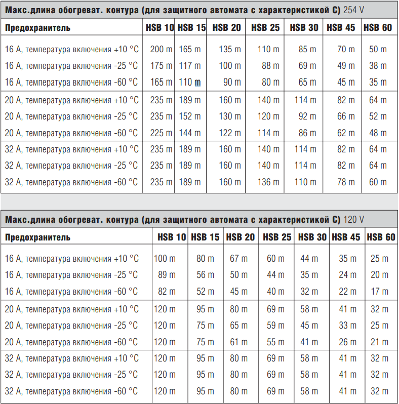 Максимальная длина обогревательного контура HSB 07-5803-125A