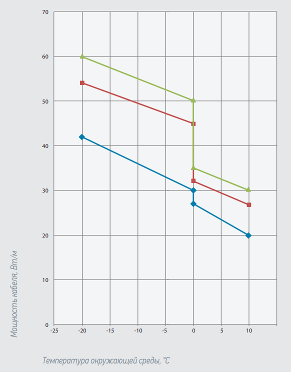- Отсутствие риска перегрева и сгорания даже при пересечении витков кабеля. Автоматическое регулирование мощности нагрева в зависимости от температуры окружающей среды