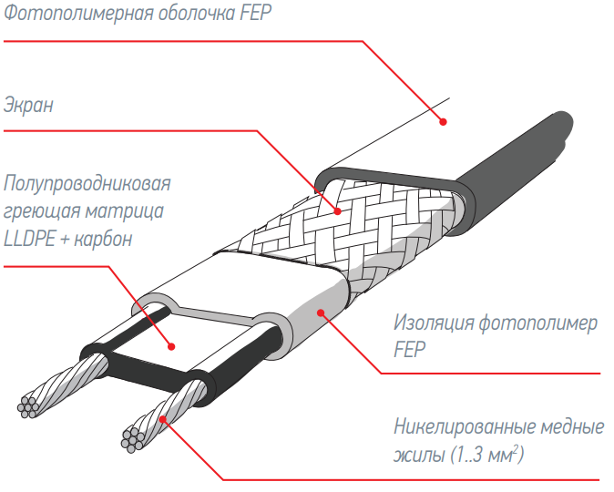 - Независимый контроль тепловыделения по всей длине кабеля;
