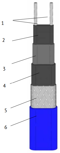 Параллельные шины обеспечивают напряжение по всей длине греющего кабеля, полимерная матрица представляет собой непрерывный греющий элемент. Подобная конструкция позволяет обрезать кабель в любом месте, исключая появление мертвых и холодных зон. Греющий кабель приобретает свои свойства саморегуляции благодаря свойствам проводящей матрицы. По мере возрастания температуры матрицы, в зависимости от температуры окружающей среды и тепловыделения кабеля , количество локальных проводящих связей в матрице уменьшается, автоматически уменьшая тепловыделение. При понижении температуры, количество локальных проводящих связей увеличивается, приводя к увеличению тепловыделения. Это происходит в каждой точке по длине кабеля. Способность саморегулирования дает возможность перехлестывать кабель, при этом не образуется горячих точек и зон локального перегрева.
