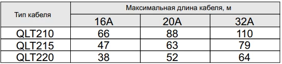 Максимальная длина нагревательной секции нагревательного кабеля QLT рассчитывается, исходя из температуры включения и типа автоматического выключателя питания: