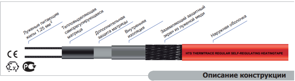 HTS Global 33TTR-2-BOТ саморегулирующийся греющий кабель соответствует всем заявленным характеристикам и поставляется с официальной гарантией.