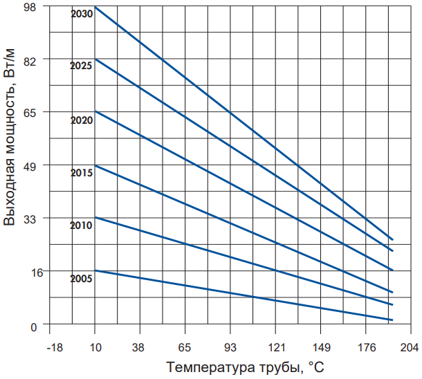 Диаграмма выходной мощности Heat Trace SH2021K-000