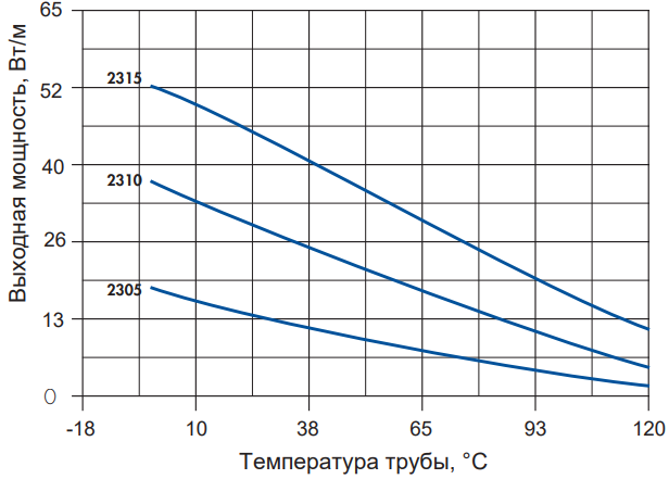 Диаграмма выходной мощности Heat Trace SM0521S-000