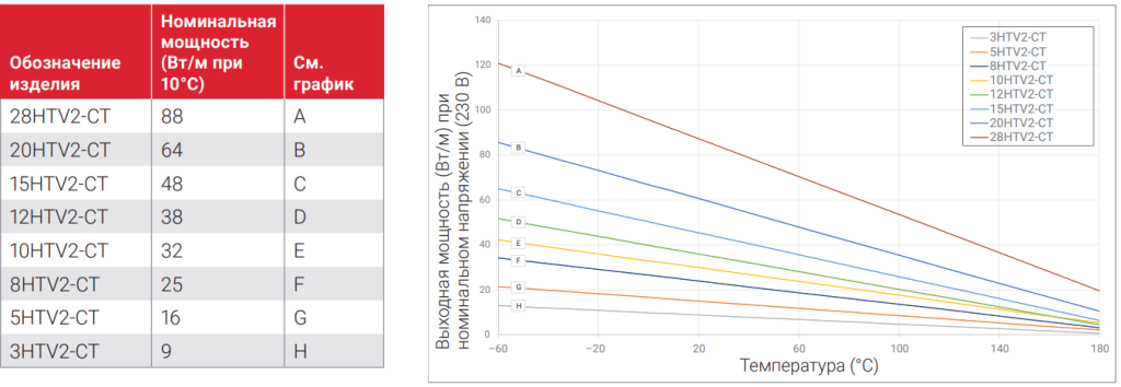 Мощность обогрева Raychem 15HTV2-CT-T3