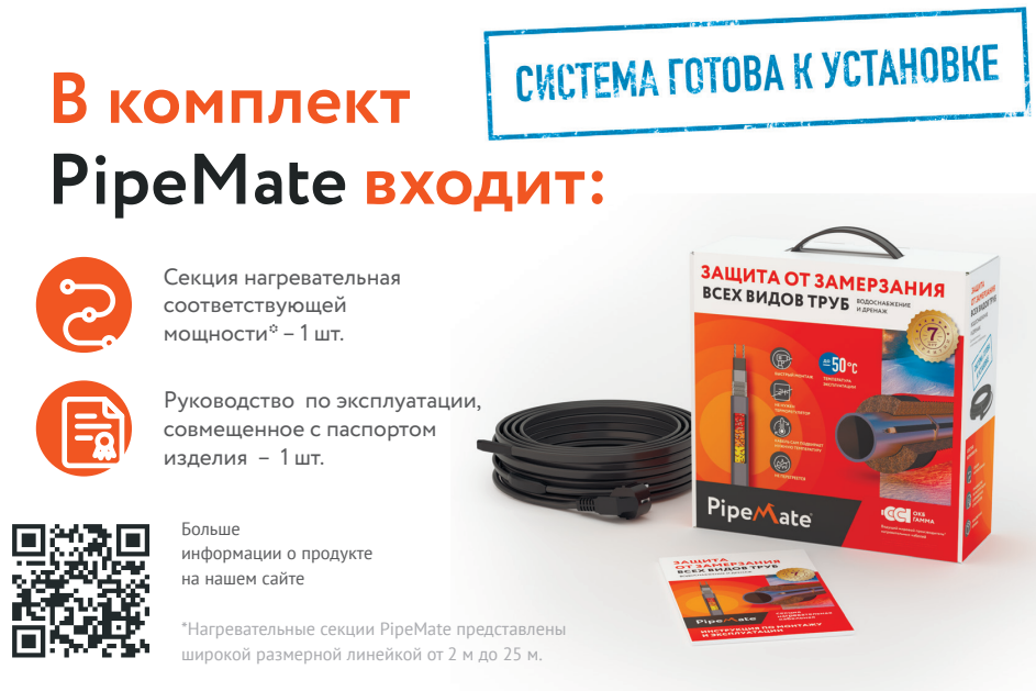 PipeMate 10Вт/м 10м комплект саморегулирующегося греющего кабеля соответствует всем заявленным характеристикам и поставляется с официальной гарантией.