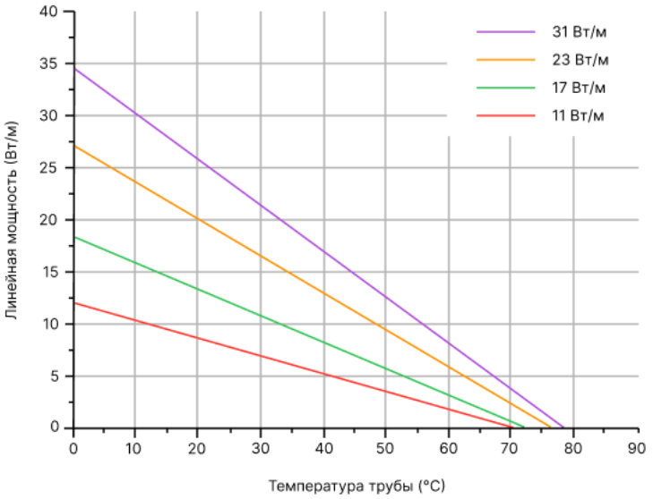 Номинальное тепловыделение в нормированных условиях для саморегулирующихся нагревательных кабелей.