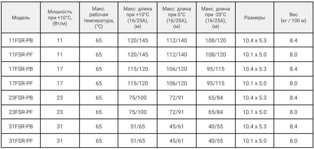 31FSR-PF саморегулирующийся греющий кабель соответствует всем заявленным характеристикам и поставляется с официальной гарантией.