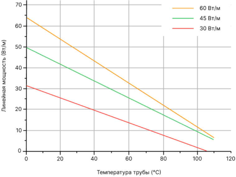 Номинальное тепловыделение в нормированных условиях для саморегулирующихся нагревательных кабелей.