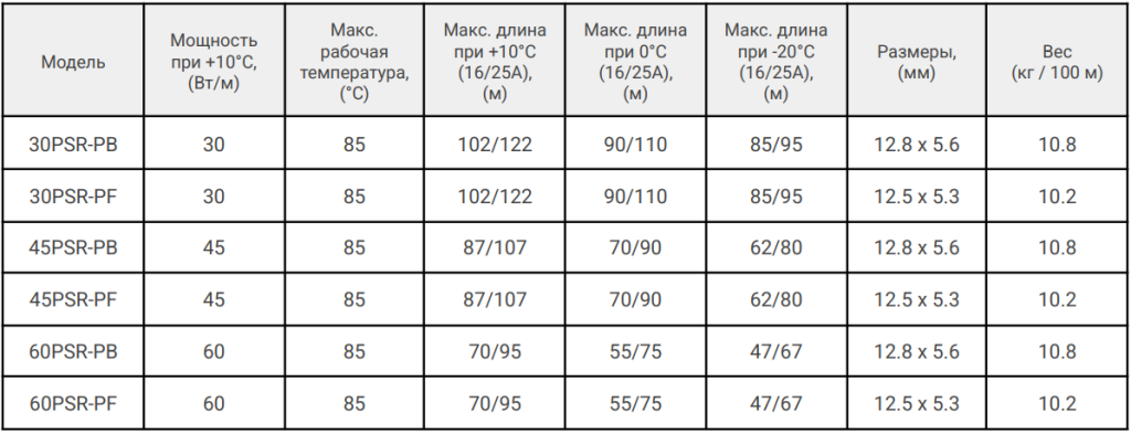 60PSR-PF саморегулирующийся греющий кабель соответствует всем заявленным характеристикам и поставляется с официальной гарантией.