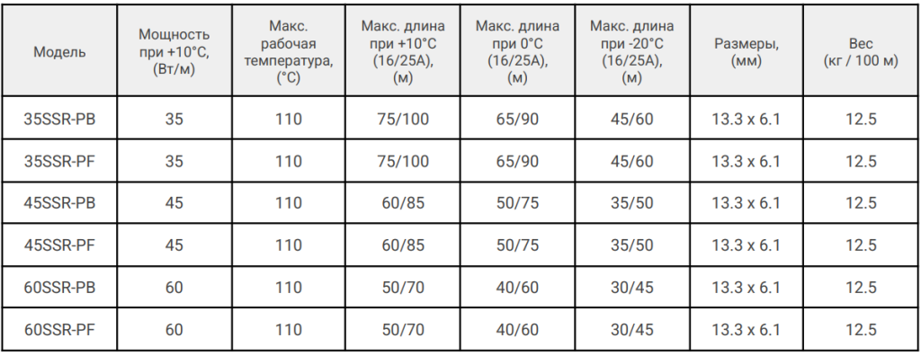 60SSR-PB саморегулирующийся греющий кабель соответствует всем заявленным характеристикам и поставляется с официальной гарантией.