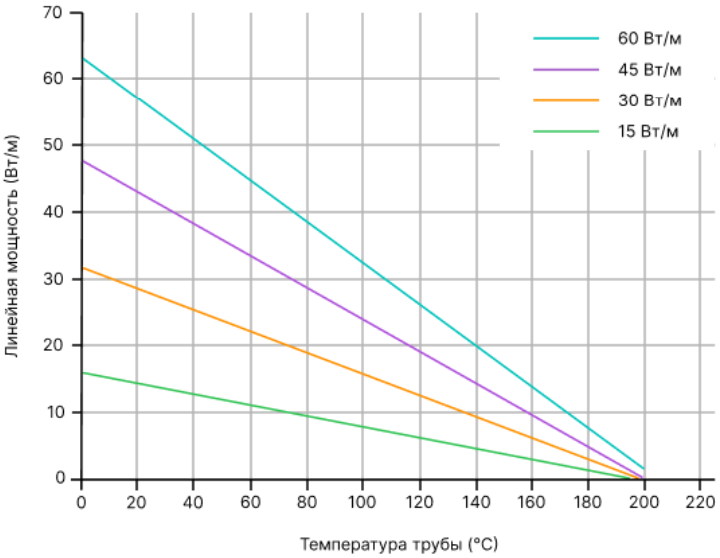 Номинальное тепловыделение в нормированных условиях для саморегулирующихся нагревательных кабелей