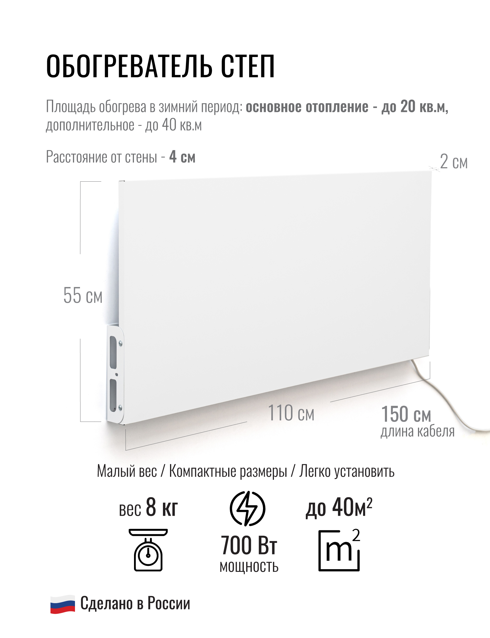 СТЕП DUOS 220/700 инфракрасный обогреватель соответствует всем заявленным характеристикам и поставляется с официальной гарантией.